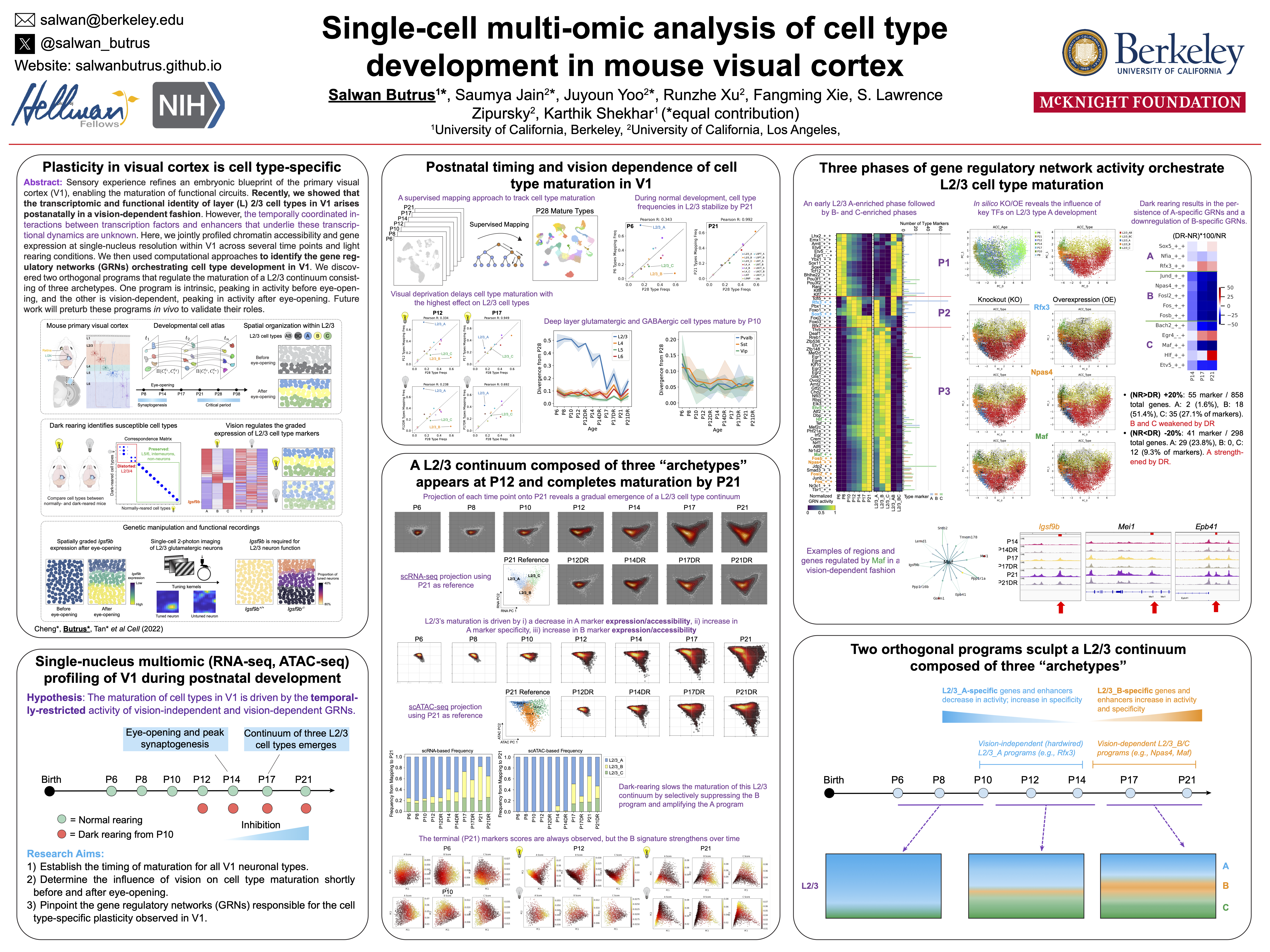 - Butrus, S., Shekhar, K. Vision mediates molecular patterning in the developing visual cortex. UC Berkeley Center for Computational Biology Retreat (2021).